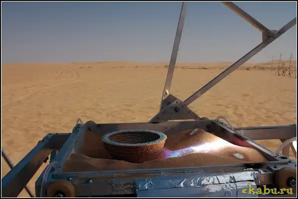 Для опытной установки, собранной руками энтузиаста, горшочек выглядит очень неплохо. Изобретатель видит большое будущее за своим проектом стекольного производства в пустыне: он уверен, что если его машину немного усовершенствовать, то с ее помощью можно будет делать не только посуду, но и совершенно уникальные вещи, свойства которых будут во многом зависеть от состава песка. И речь тут не о песчаных скульптурах, а, например, о гигантских зеркалах, так нужных астрономам (например, в телескопе "Хаббл" стоит зеркало диаметром 2,4 метра, которое обошлось в астрономическую сумму).