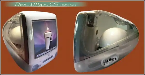 Дизайнер Клаус Дибель (Klaus Diebel) создал устройство, которое объединит фанатов кофе с фанатами продукции корпорации Apple. iMac CS (iMac Coffee Sub) – это кофеварка, выглядящая как монитор от Apple конца 20-го – начала 21-го века.
