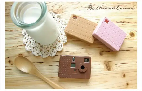 Японская компания FUUVI работает на тех любителей фотосъемок, для кого в фотоаппарате главное – не «навороты», а оригинальность. Вот именно для них выпущены камеры Biscuit Camera и Juice Camera в виде печенья и пачки с соком, соответственно.