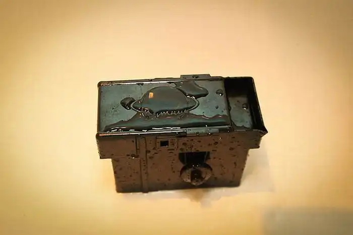 10. Заливаем холодную воду в бачок и тут же сливаем, засекаем время проявки и заливаем проявитель.
