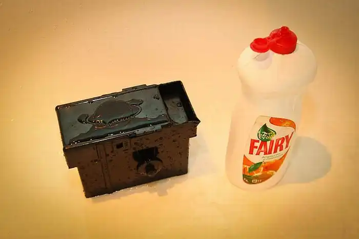 11. Сливаем фиксаж и промываем проточной водой около 10 мин. В конце добавляем в него каплю Fairy и хорошо промываем. Слой Fairy будет находиться на пленке, и капли воды будут по нему стекать - таким образом обеспечится равномерное высыхание.