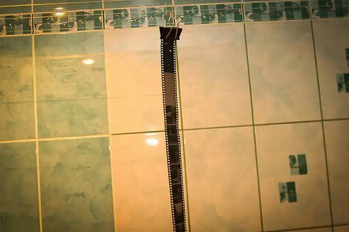 12. Аккуратно достаём плёнку из бачка и сушим на прищепке в ванной, там меньше пыли. Сушка около 3 часов.