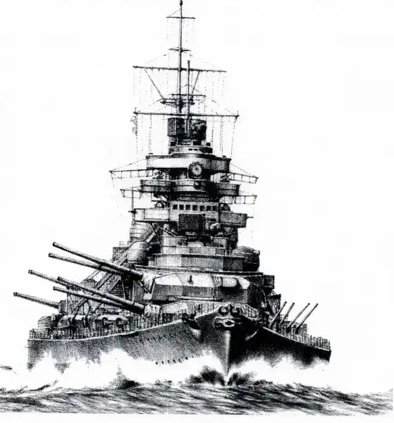 Вооружение: восемь 380-мм и двенадцать 150-мм орудий, шестнадцать 105-мм зениток, шестнадцать 37-мм и двенадцать 20-мм автоматов, 8 торпедных аппаратов (установлены в 1942 г. только на “Тирпице”), 6 гидросамолетов.