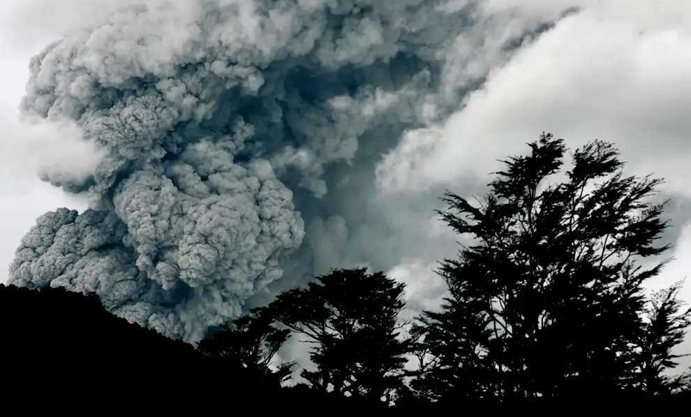 Облако пепла от вулкана Пуйеуэ недалеко от Осорно. Пепельное облако помешало авиаперелетам до самой Австралии, вернувшись из своего «мирового» турне.
