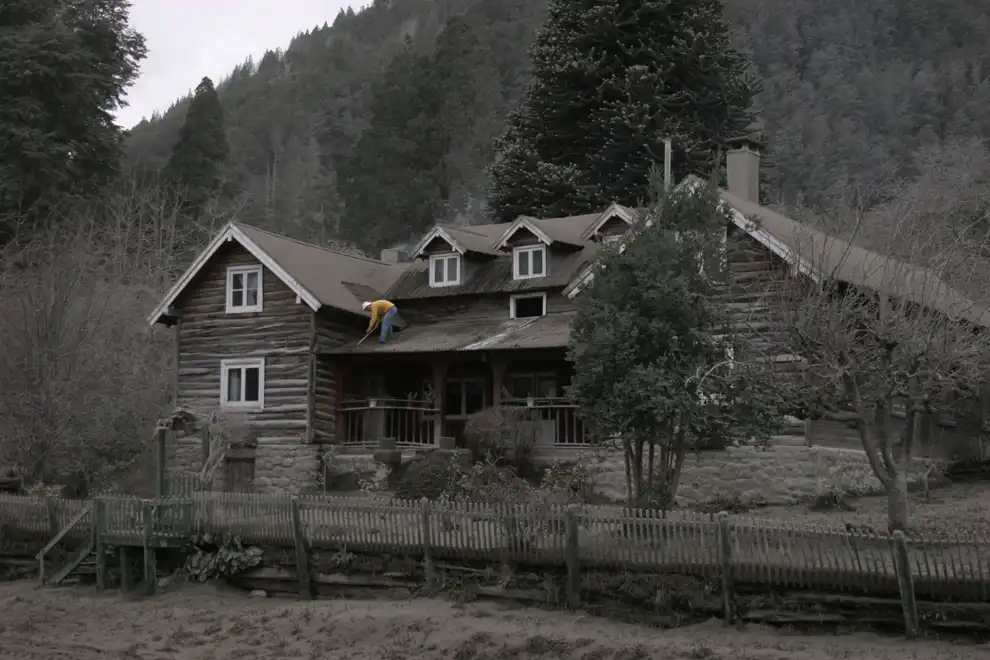 Общий вид на горнолыжный курорт Вилла Ла Ангостур под «одеялом» пепла.