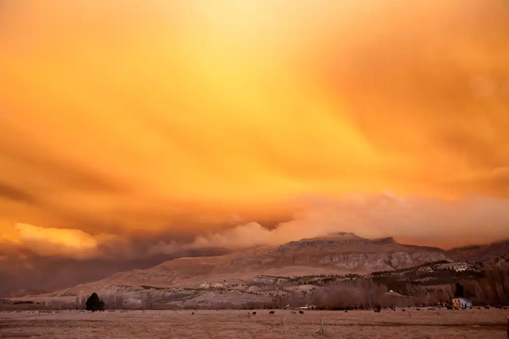 Пепел и дым в облаках после извержения чилийского вулкана Пуйеуэ в Чили на границе с Аргентиной.