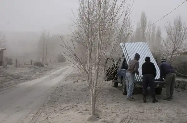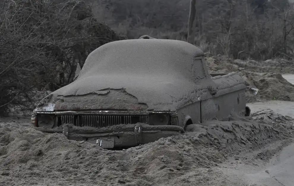 Автомобиль в вулканическом пепле в Вилла Ла Ангостура.