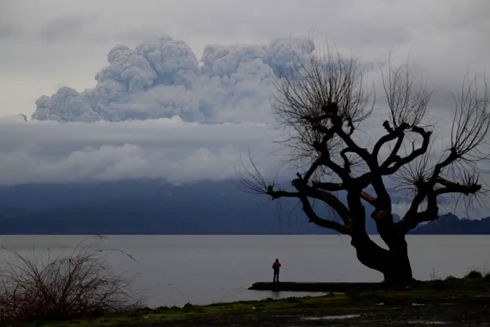 Одинокая фигура на фоне пепла и дыма от вулкана Пуйеуэ в Чили. Вулкан спал несколько десятков лет и начал извергаться в начале июня.