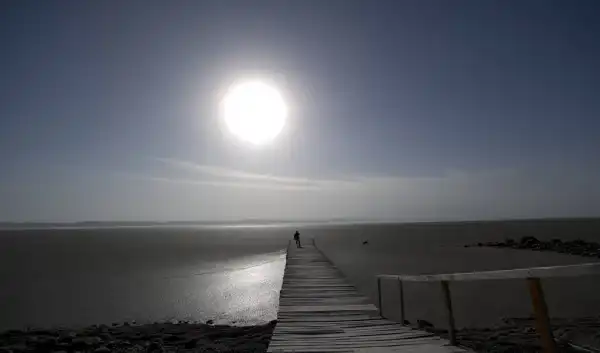 Пирс Пуэрто Арауко на озере Науэл Хуапи занесен песком и пеплом.