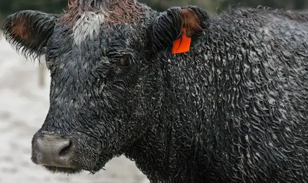 Покрытая пеплом корова в Вилла Ла Ангостура в южной Аргентине.