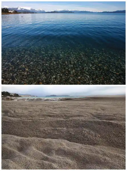 На этой комбинации фото изображено озеро Науэл Хуапи до и после извержения одноименного вулкана.