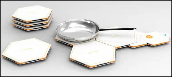 Девайс Honeycomb - это еще одна индукционная плита, разогревающая посуду вихревыми токами. Это устройство привлекает не только замечательным дизайном: благодаря сотовидной структуре пользователь может "достраивать" плиту до нужного количества конфорок. Автор - Альфред Чинг (Alfred Ching).