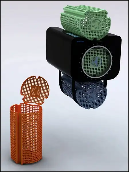 Стиральная машина от Саба Заре (Saba Zare) действует подобно пулеметной ленте: когда верхняя корзинка для белья наполняется, машина автоматически загружает ее в стиральный отсек, уведомляя вас об этом через специальное приложение. Вам остается только подойти и вытащить снизу корзинку с мокрым выстиранным бельем.