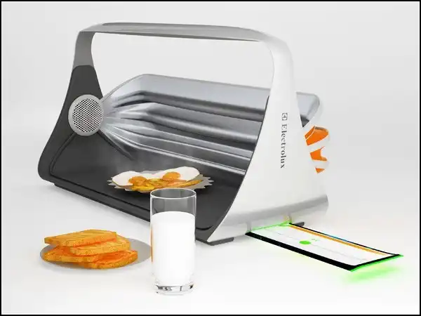 Конечно же, парад техники Electrolux не мог обойтись без пылесоса. Его фишка, которая выделяет его среди других киберпылесосов(например, корейских собак-роботов) - способность ориентироваться в доме по скрепке-датчику, закрепленной на обуви хозяина. Этот домашний робот всегда будет у ваших ног! Отец идеи - корейский дизайнер Gyu Ha Choi.