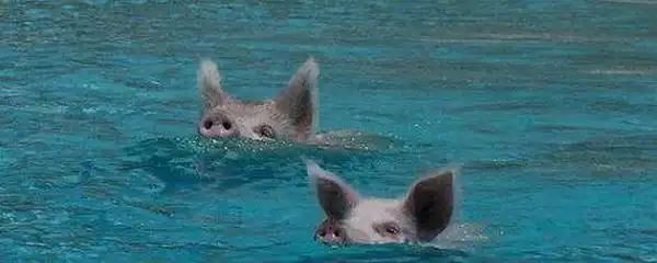 На необитаемом островке Биг Мэйджор Кей проживает сообщество одичавших свиней, которых регулярно подкармливают специально нанятые для этого багамцы и туристы, приплывающие полюбоваться на чудо природы.