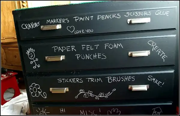 Вечно мы запутываемся, в каком ящике шкафа, что лежит. Но и эту проблему можно решить при помощи мелков – достаточно лишь оставить на каждом из ящиков пометки относительно их содержимого.
