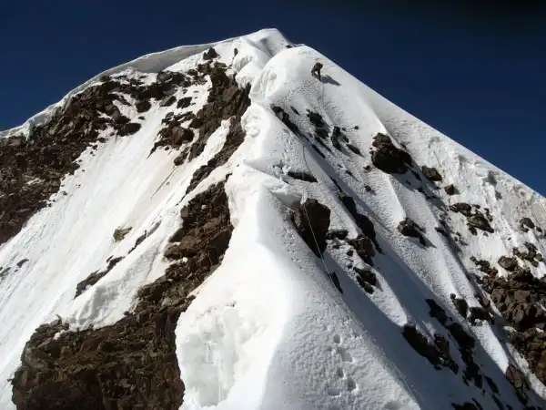 Жил в Сванетии (высокогорная область в Грузии) охотник Бектиль, молодой, красивый и отважный. Он ничего не боялся и как-то пошел охотиться на склоны грозной Ушбы. У ледника встретил он Дали – красавицу богиню охоты, полюбил ее и остался жить на Ушбе. Однако, однажды он заскучал по дому и покинул Дали. В Сванетии его встретила прекрасная невеста, и Бектиль забыл о богине. Но как-то на большом празднике, когда вся деревня пировала, появился огромный тур. Бектиль схватил лук и помчался за туром, и тот увел его высоко в горы. На склонах Ушбы тур исчез, а Бектиль остался на отвесных скалах, с которых нет пути назад. Тогда он понял, что это месть Дали. Под скалой собрались люди из деревни, они оплакивали Бектиля, но ничем не могли ему помочь. Поняв, что выхода нет, Бектиль бросился со скалы, и кости его стали белым снегом на скалах Ушбы, а кровь окрасила скалы в красный цвет.