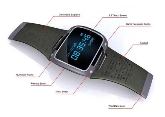 Смартфон WristPC оснащен сенсорным дисплеем, расположенным на подъемной крышке.