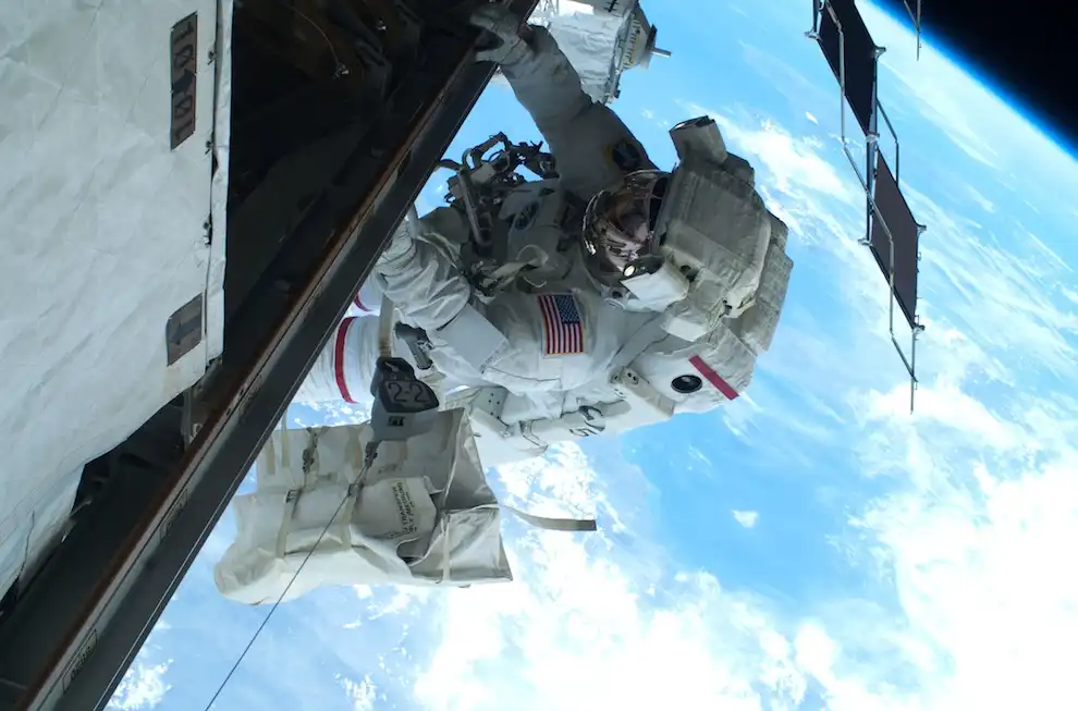 Астронавт НАСА Рик Мастраччио в открытом космосе 11 апреля 2010 года: