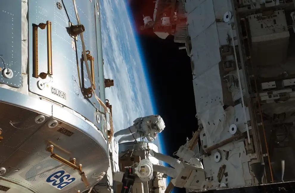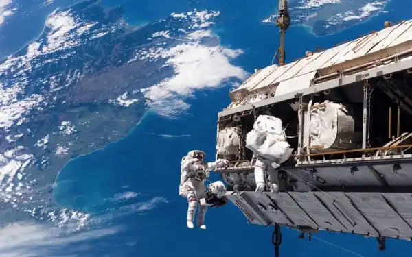 Астронавты Стив Бауэн и Эл Дрю работают в открытом космосе: