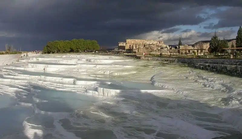 Рядом с термальными источниками находятся руины античного города Иераполя, сохранившего до наших дней памятники древней архитектуры. Уже в начале нашей ры Иераполь был известен как курорт.
