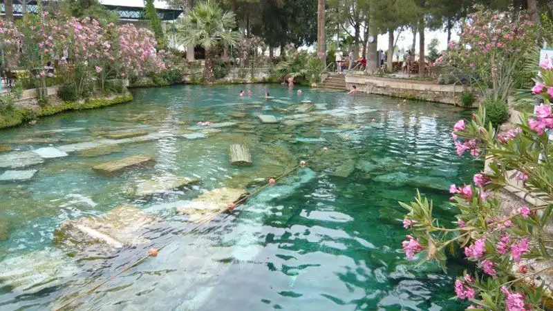 Для купания также открыт бассейн Клеопатры с минеральной водой из источников. В этом бассейне согласно преданию принимала ванны легендарная египетская царица. Стоимость купания составляет 25 турецких лир (на июнь 2010 года).