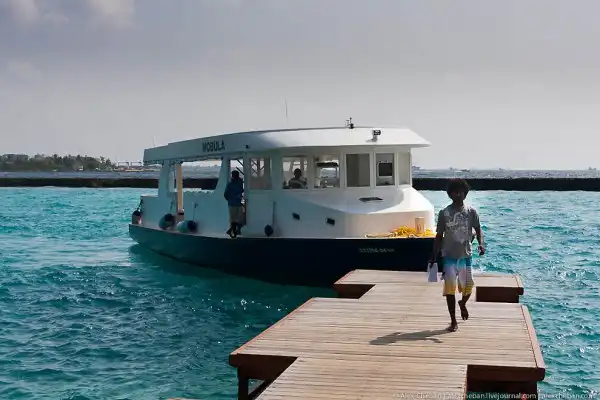 Если самолет прилетает в ночное время, то единственный выход - это гостиница. Достаточно дорогая прямо возле аэропорта и более бюджетные в Мале или на острове Хулхумале. Это "дони" - пассажирские катера, которые ходят с острова Хулуле в саму столицу Мале: