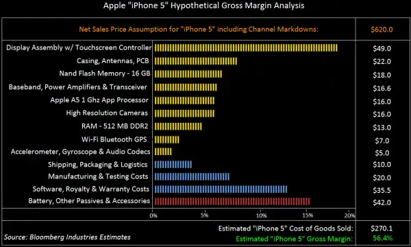 Чтобы иметь представление о розничной стоимости того или иного устройства, нужно знать стоимость каждого из его компонентов с учетом стоимости сборки. Поскольку сотовый телефон Apple iPhone 5 еще не вышел, а спрос на него уже большой, информационный портал Bloomberg подсчитал, сколько денег тратит Стив Джобс на производство одного такого мобильника.