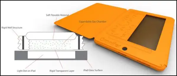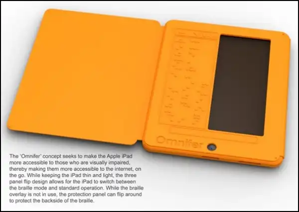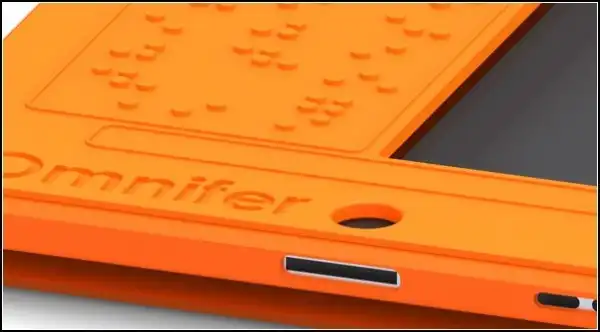 Omnifer - эластичный чехол для iPad, на котором нанесены выпуклые точки азбуки Брайля. Они будут соответствовать кнопкам на экране, и, вкупе со специальным приложением, сделают сенсорный экран доступным для "печати вслепую".