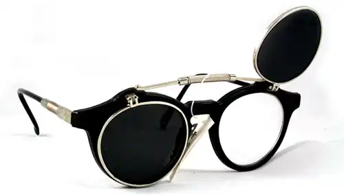 Уморительный стимпанк (steam - пар) родился в конце восьмидесятых годов XX века. Воспоминание о викторианской Англии времён изобретения паровых двигателей породило несметное количество выразительных образов, удивительных механизмов и устройств. Теперь металлические или пластиковые оправы с двойными стеклами, "шорами" и другими "подвижными" элементами носят не столько последователи стимпанка, сколько многочисленные модники-эксцентрики. Леди Гага – большая поклонница как эстетики стимпанка, так и подобных оправ.