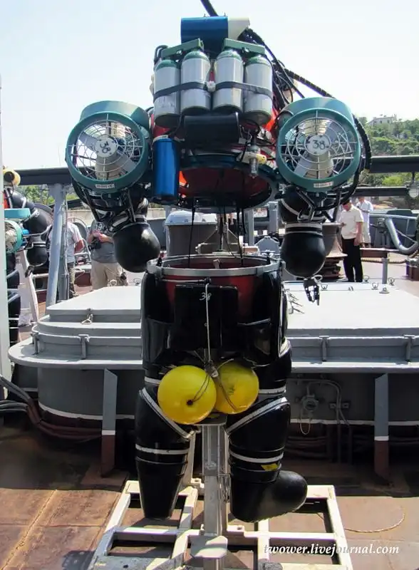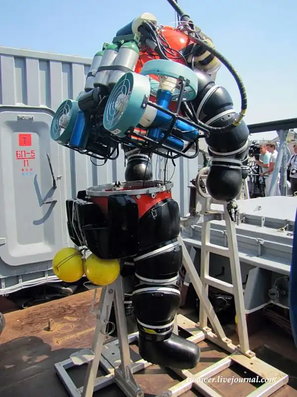 Под водой движение организовано с помощью двигателей, которыми управляет водолаз с помощью педалей