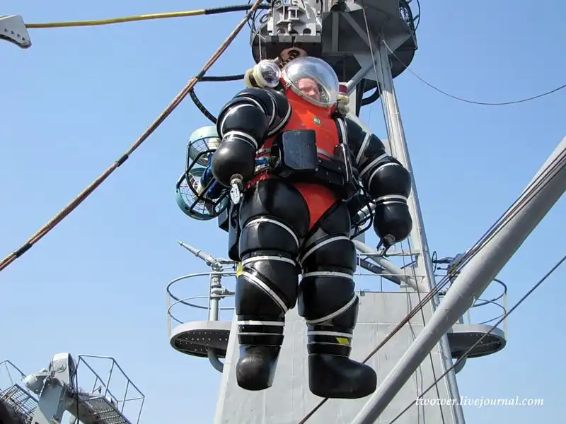 В скафандре поддерживается постоянное давление (так что не нужно поэтапное всплытие для избежания кессонной болезни)