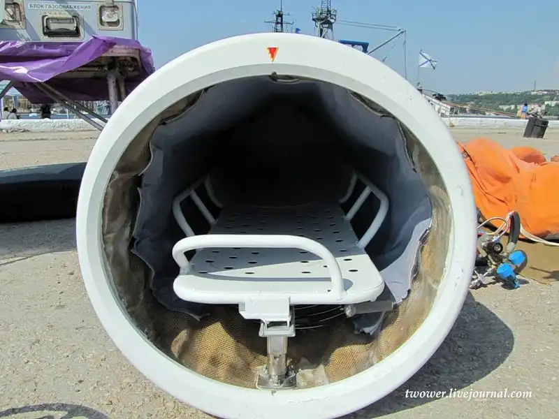 Спасательное устройство "Спрут-3". Спускается за борт с помощью выносной стрелы и используется для спасения людей