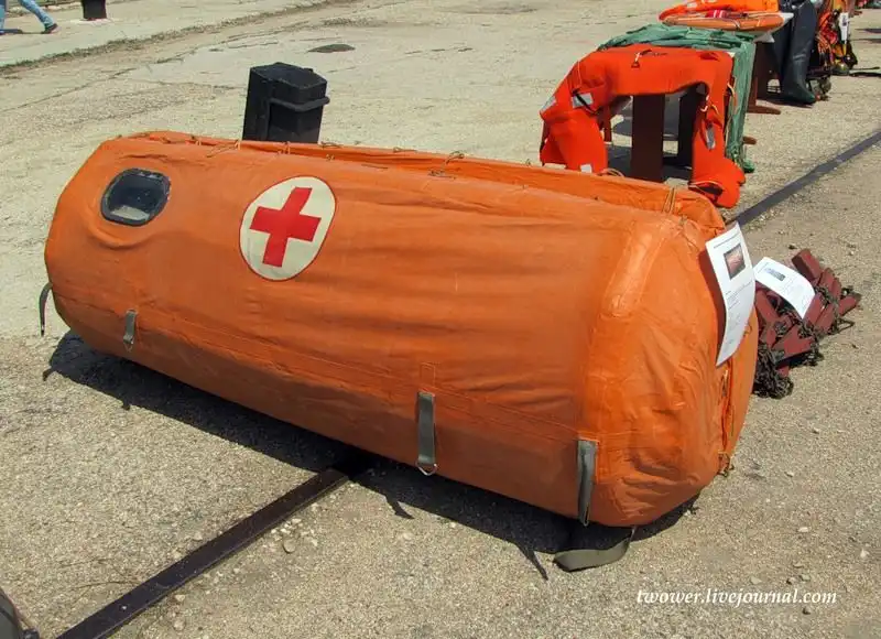 Складная транспортировочная водолазная барокамера БВТ-С шифр "Кубышка" предназначена для эвакуации и транспортировки водолазов, заболевших декомпрессионной болезнью