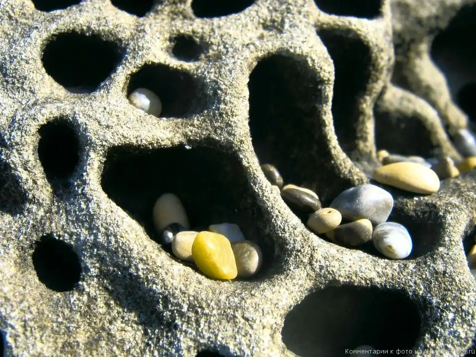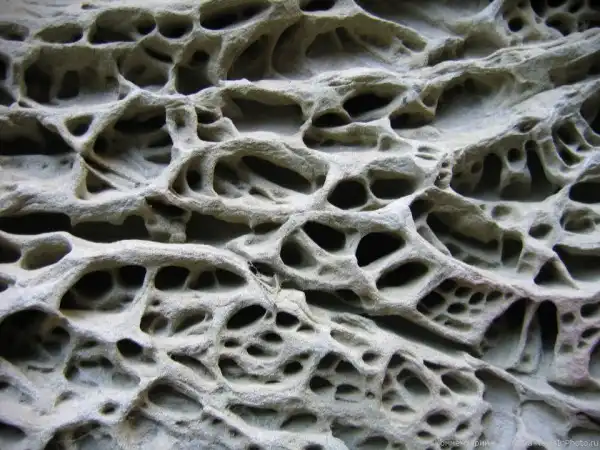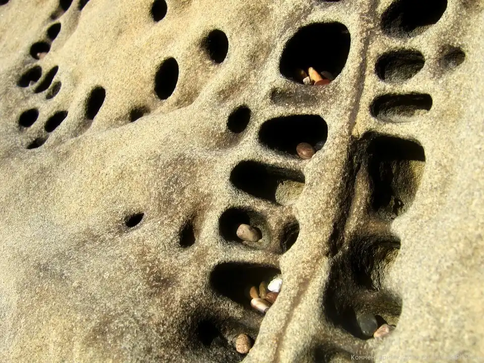 Это расточенное отверстие в процессе жизни организма расширяется, а организм после смерти разлагается на элементы. И, наконец, тафони могут формироваться под воздействием таких явлений, как приливы, ветер и дождь.