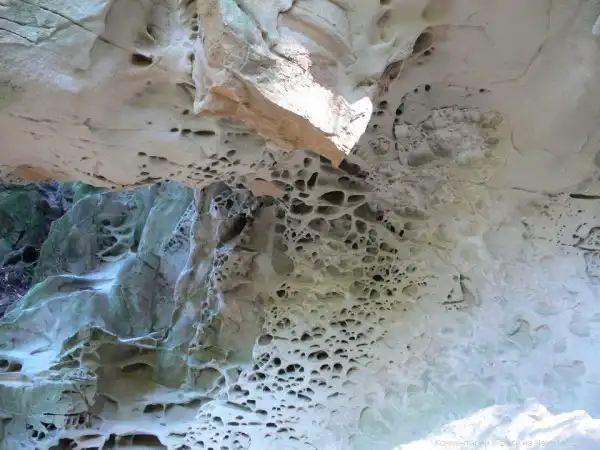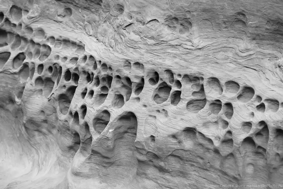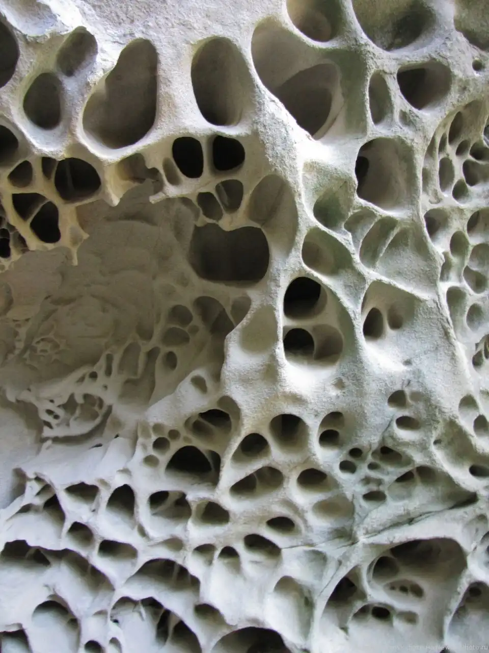 Хотя тафони обычно невелики, они могут достигать больших размеров и иметь самую разнообразную форму. На приведенных снимках вы можете увидеть скопления крошечных ямок, словно под воздействием магнитного поля.