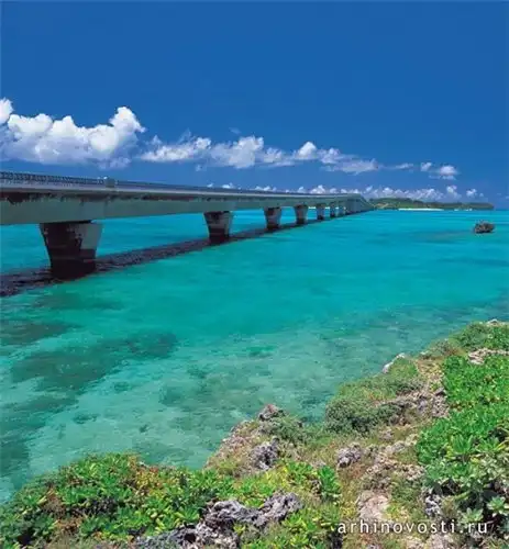 В 1992 году мост Икэма Охаси длиной 1425 метров связал острова Мияко и Икэма. Вода под ним очень чистая, и поверхность моря иногда переливается красивым изумрудно-зеленым цветом.
