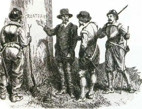 Всего в 1590 году на североамериканский остров Роанок было направлено четыре поисковые экспедиции, пследнюю возглавлял уполномоченный королевы Елизаветы I Уолтер Рейли.