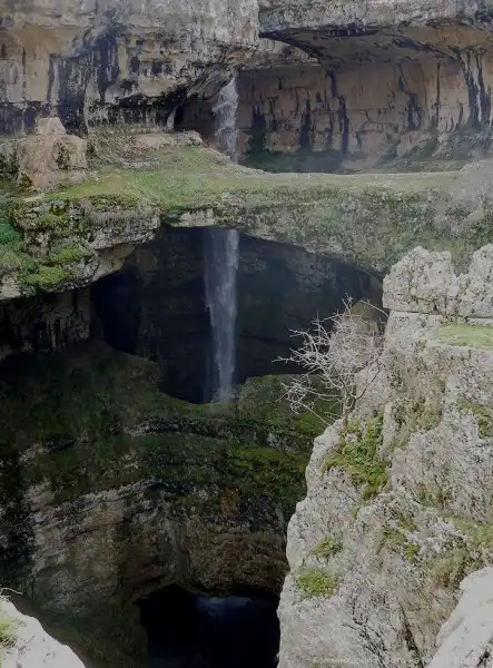 Открытый только в 1952 году, водопад Баатара в Ливане – это не просто необычный водопад. Можно сказать, что он, как фокусник, скрывает что-то в рукаве до поры до времени и это что-то удивительно. Водопад спадает с высоты 255 метров в огромную известняковую пещеру юрского периода.