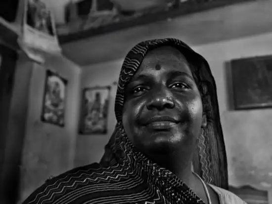 6) Рита Дас позирует в своём доме. Она работает поденной уборщицей в компании Chittagong City Corporation. Её муж потерял работу дворника из-за того, что отсутствовал несколько дней по болезни.