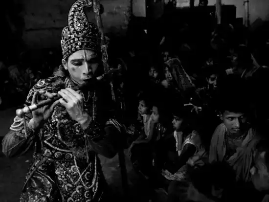 9) Молодой мусорщик играет роль Кришны в традиционной пьесе "Кришналеела" (посвящённой роману между Кришной и Радхой). Кришна - герой эпоса "Махабхарата". Кришну и Радху почитают индусы любой касты.