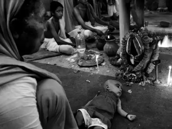 8 ) Лакшми Дас посвящает свою внучку Гхоту – камню, которому поклоняются неприкасаемые. Такова традиция людей этой касты – посвящать новорождённых камню Гхот.