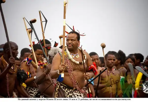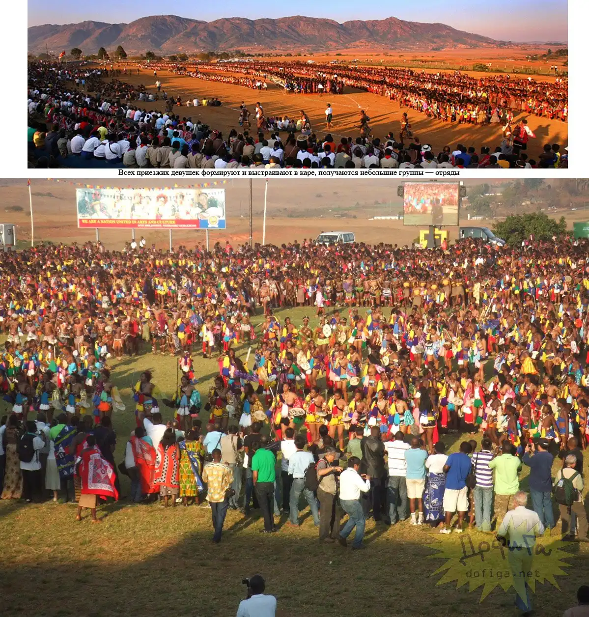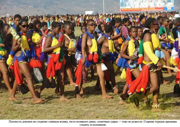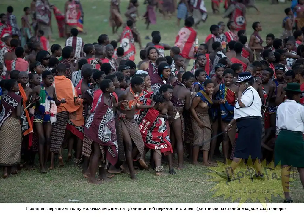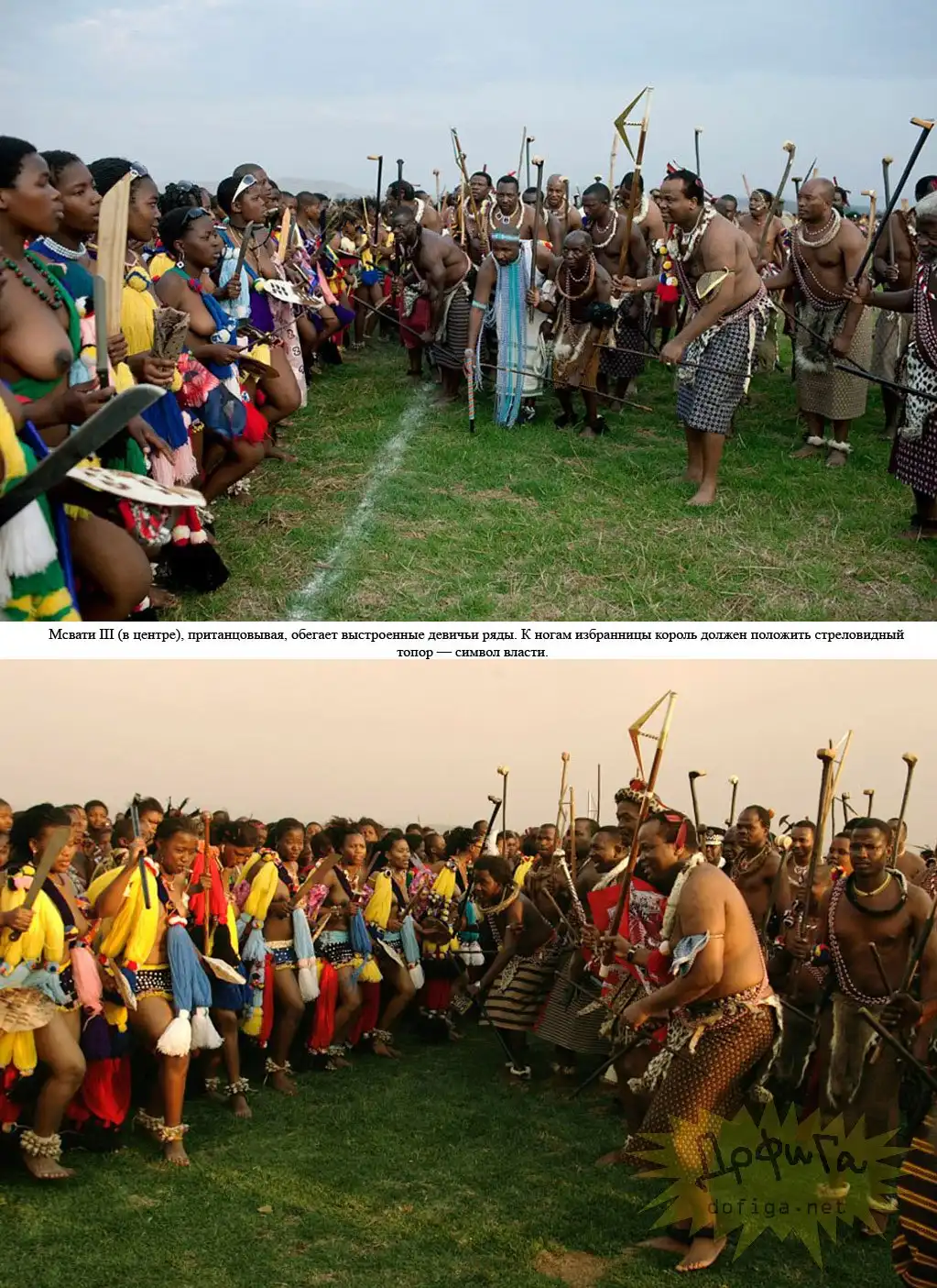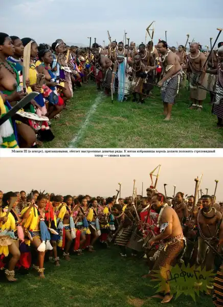 Король Свазиленда Мсвати III выбирает себе новую жену, и все девственницы государства ( это приблизительно 80000 ) обязаны присутствовать на стадионе, где проходит отбор.