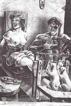 2) Большие, тяжелые клетки с голодными крысами кладутся арестанту на живот и грудь. Дно клеток открывается с помощью специальной задвижки;