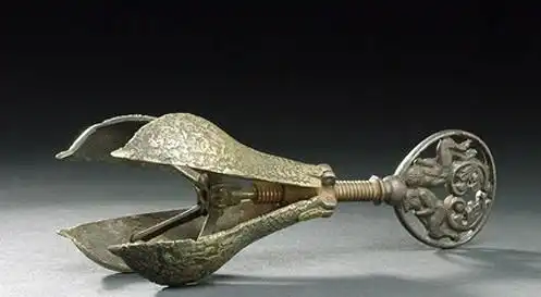 Этими зубчатыми железными щипцами медленно раздавливали яички допрашиваемого.