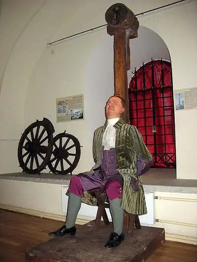К этой пытке прибегали очень редко. Во-первых, было достаточно легко убить допрашиваемого, во-вторых, существовала масса более простых, но не менее жестоких истязаний.