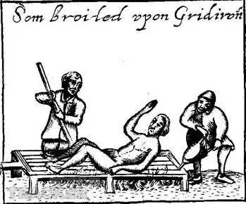Иногда гридирон делался в виде дыбы, чтобы иметь возможность прибегнуть к комбинированной пытке.