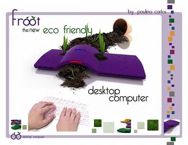 Первый пример использования лазерной клавиатуры - компьютер-концепт Dell Froot от дизайнера Паулины Карлос. Интересно, что монитор в нем - тоже виртуальный! Компьютер оригинальной формы можно использовать в любом углу помещения, лишь бы поверхности подходили для проецирования. Дизайнер отмечает, что экономия на мониторах и клавиатурах очень экологична.