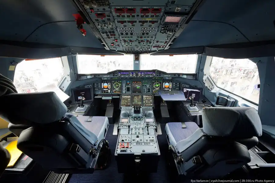 Верхняя палуба немного уже, чем нижняя – на ней размещаются 8 кресел в ряд, вместо 10. Она соответствует размерам самолета А330.