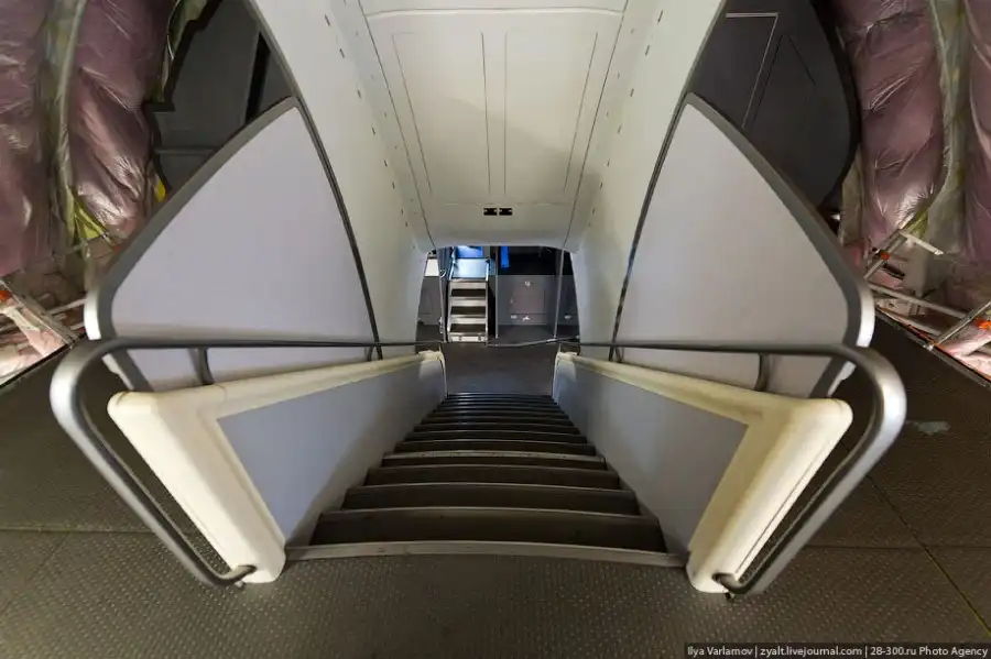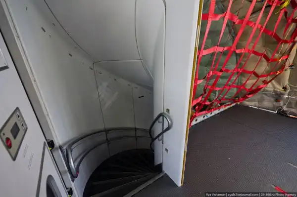 В самолете две лестницы – одна прямая, вторая винтовая.